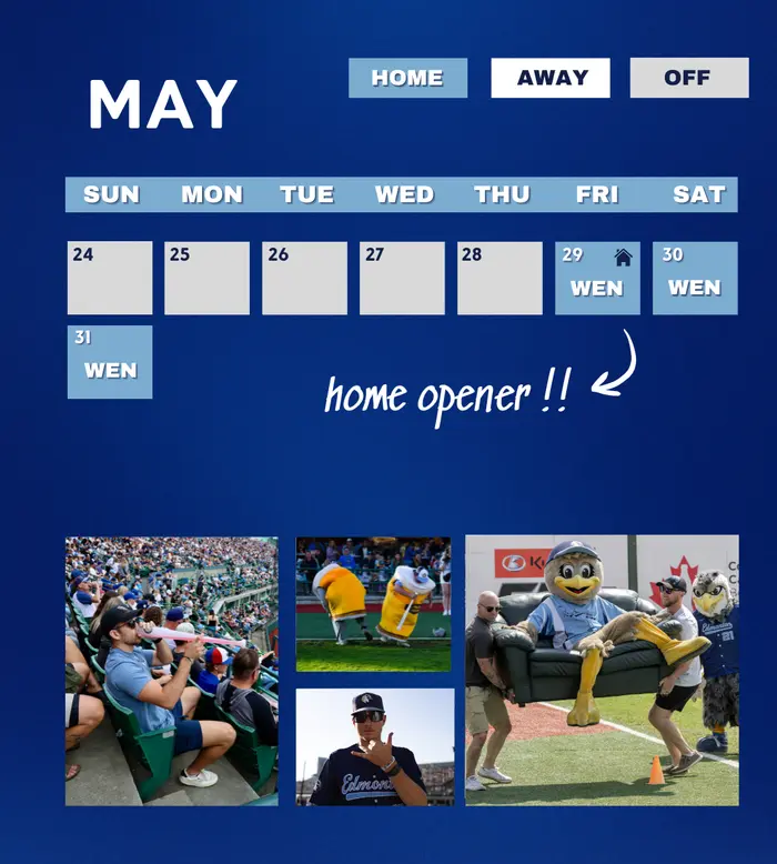 While the 2026 promotional calendar is still in the works, be sure to mark your calendars for our Friday Night Home Opener on May 29, the Canada Day Game on July 1, and Fan Appreciation Day on July 26. Stay tuned as we get closer to the season for the full lineup of summer fun!